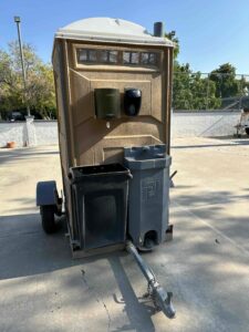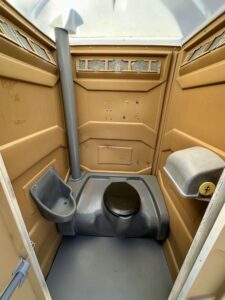 The GAP Compliant Portable Restroom Package includes one PJN3™ Restroom, exterior sink, towel dispenser, soap dispenser, locking toilet paper dispenser, seat, urinal, mirror and dump valve.